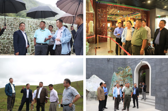 在恒益集團(tuán)副總裁彭安強(qiáng)及相關(guān)領(lǐng)導(dǎo)陪同下,吳昂謬敏定主席一行考察了甘拜地邊境特色小鎮(zhèn)、高黎貢文化創(chuàng)意產(chǎn)業(yè)園區(qū)、騰沖東山康養(yǎng)小鎮(zhèn)、東山城市觀光牧場等項(xiàng)目,聽取了項(xiàng)目的規(guī)劃、建設(shè)、運(yùn)營等情況介紹。通過實(shí)地參觀考察,吳昂謬敏定主席對恒益產(chǎn)業(yè)發(fā)展情況有了更具體的了解,對恒益集團(tuán)的快速穩(wěn)健發(fā)展給予了高度評價。