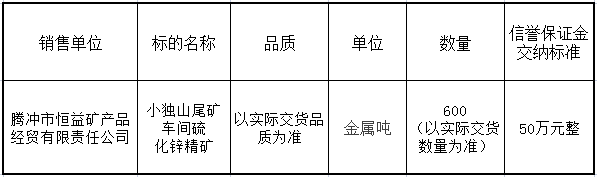 騰沖市恒益礦產品經貿有限責任公司關于鋅精礦競價銷售公告(202305)號