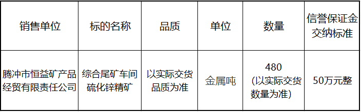 騰沖市恒益礦產品經貿有限責任公司關于鋅精礦競價銷售公告(202308)號