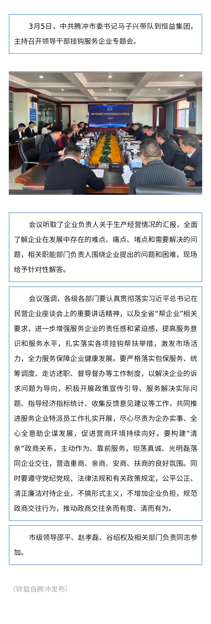 騰沖召開領導干部掛鉤服務企業專題會 來源: 瀏覽量:4503 日期:2025-03-06 分享到: 上一篇:騰沖海關機關黨委、騰沖機場黨委及騰沖恒益東山黨支部聯誼主題黨日活動圓滿舉行 下一篇:云南省商務廳副廳長譚偉一行蒞臨恒益集團調研指導