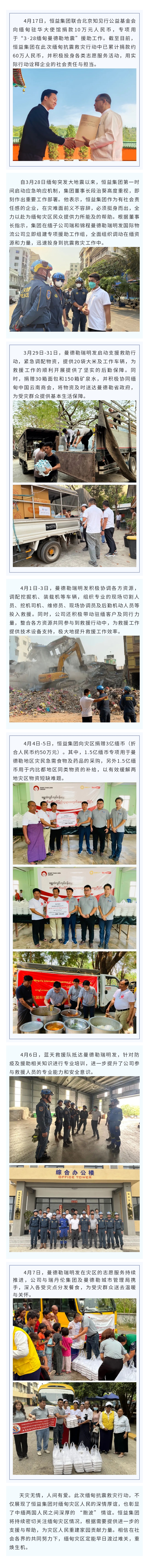 恒益集團(tuán)持續(xù)助力緬甸抗震救災(zāi),彰顯企業(yè)擔(dān)當(dāng) 來源: 瀏覽量:3616 日期:2025-04-17 分享到: 上一篇:以政策賦能員工 用制度驅(qū)動(dòng)成長(zhǎng) 下一篇:“樂心”有道:預(yù)防、阻斷和逆轉(zhuǎn)心臟病圓桌對(duì)話即將開幕