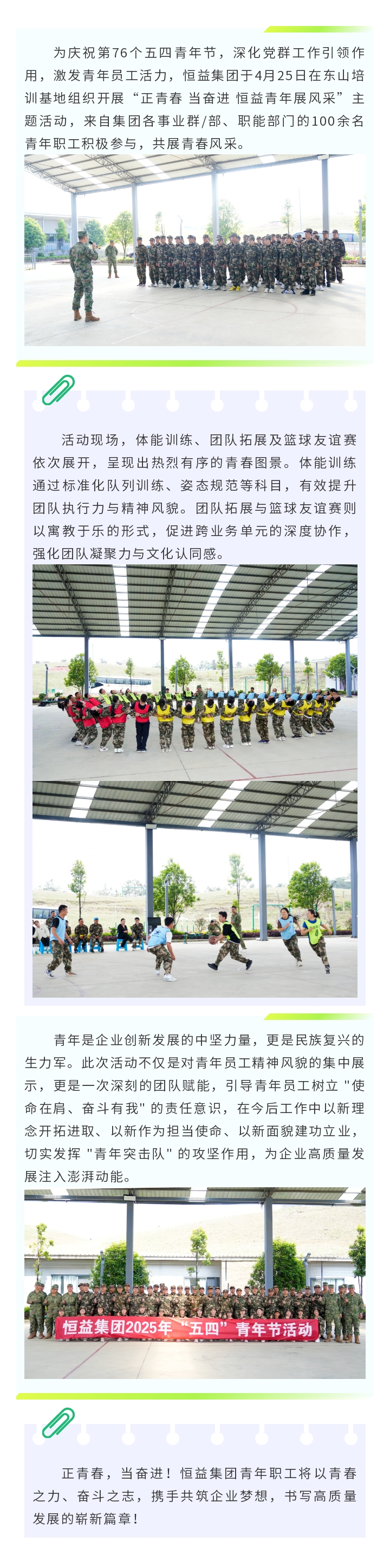 恒益集團開展五四青年節主題活動,激發青年職工奮進力量 來源: 瀏覽量:3611 日期:2025-04-25 分享到: 上一篇:“自然狂歡夜·落日露營派對”——暢享東山草甸星空·共舞篝火盛宴 下一篇:4·22世界地球日丨踐行綠色發展 守護綠水青山
