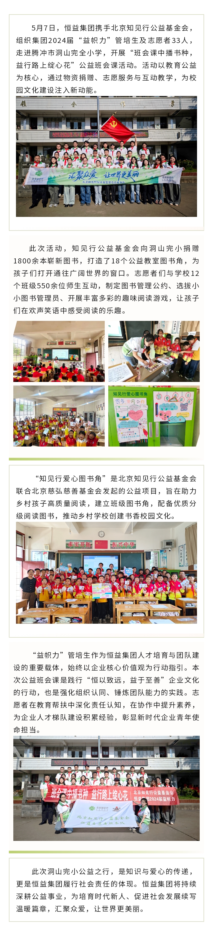 恒益集團攜手知見行公益基金會,助力鄉村學子“悅”讀未來