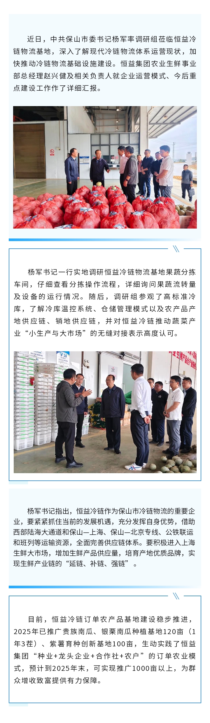 楊軍書記蒞臨恒益集團調研生鮮果蔬冷鏈物流產業發展情況