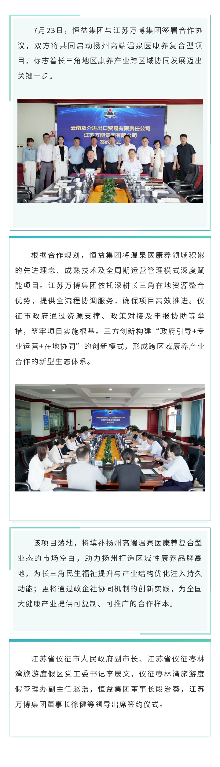 恒益集團與萬博集團攜手共建揚州溫泉醫康養項目